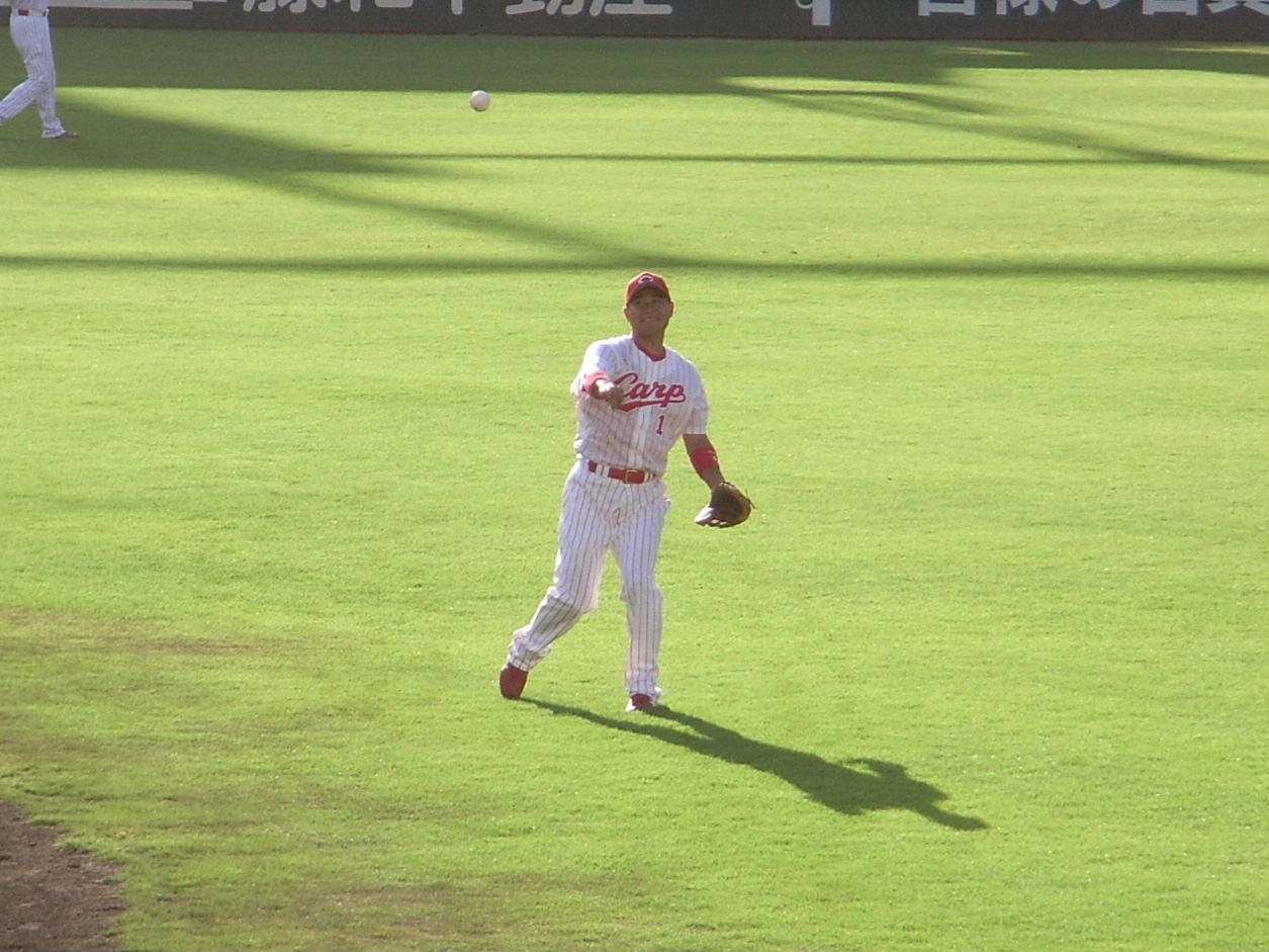 昨日は負けたけれど、最近の広島は強いらしい。 中日の先発が中田で2回までに5点リードされたのを逆転勝利。 市民球場ラストイヤーだからお客さんが多いと思ったてたけど、 カーブが良い試合を続けているのも大きいかも。 折角だから広島市民球場でホームのユニフォームを着る前田を観たいと旅行前は思っていたけど、 昨日は出番無しで諦めかけたところで代打で出場。これで今回の旅行はやり残した事はなくなった感じ。 キャッチボールで前田の半笑いの顔も観れたのひょっとした今回の最大の収穫だったかも。