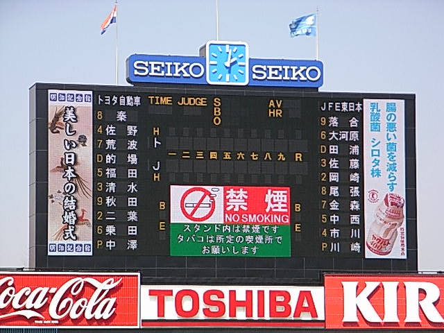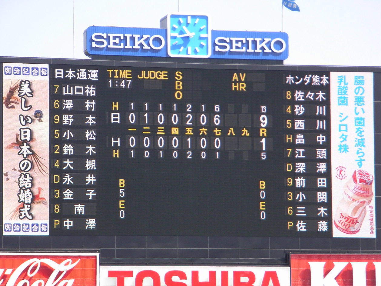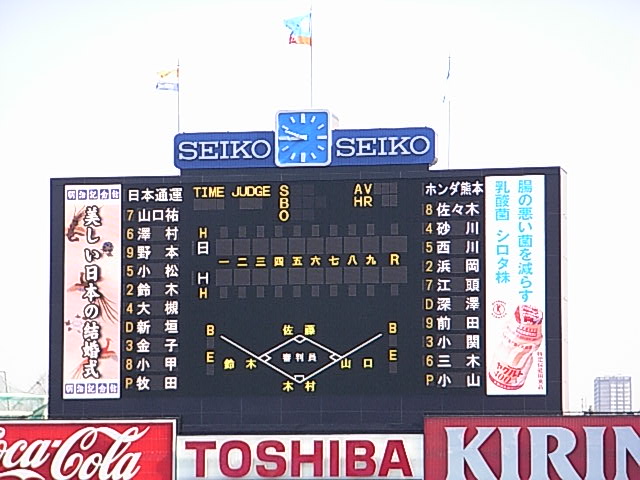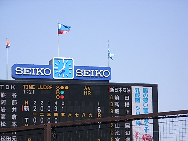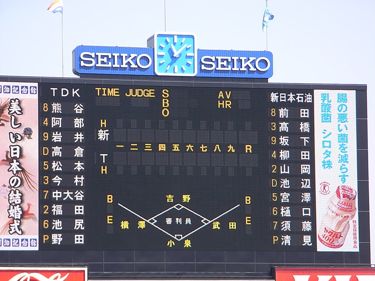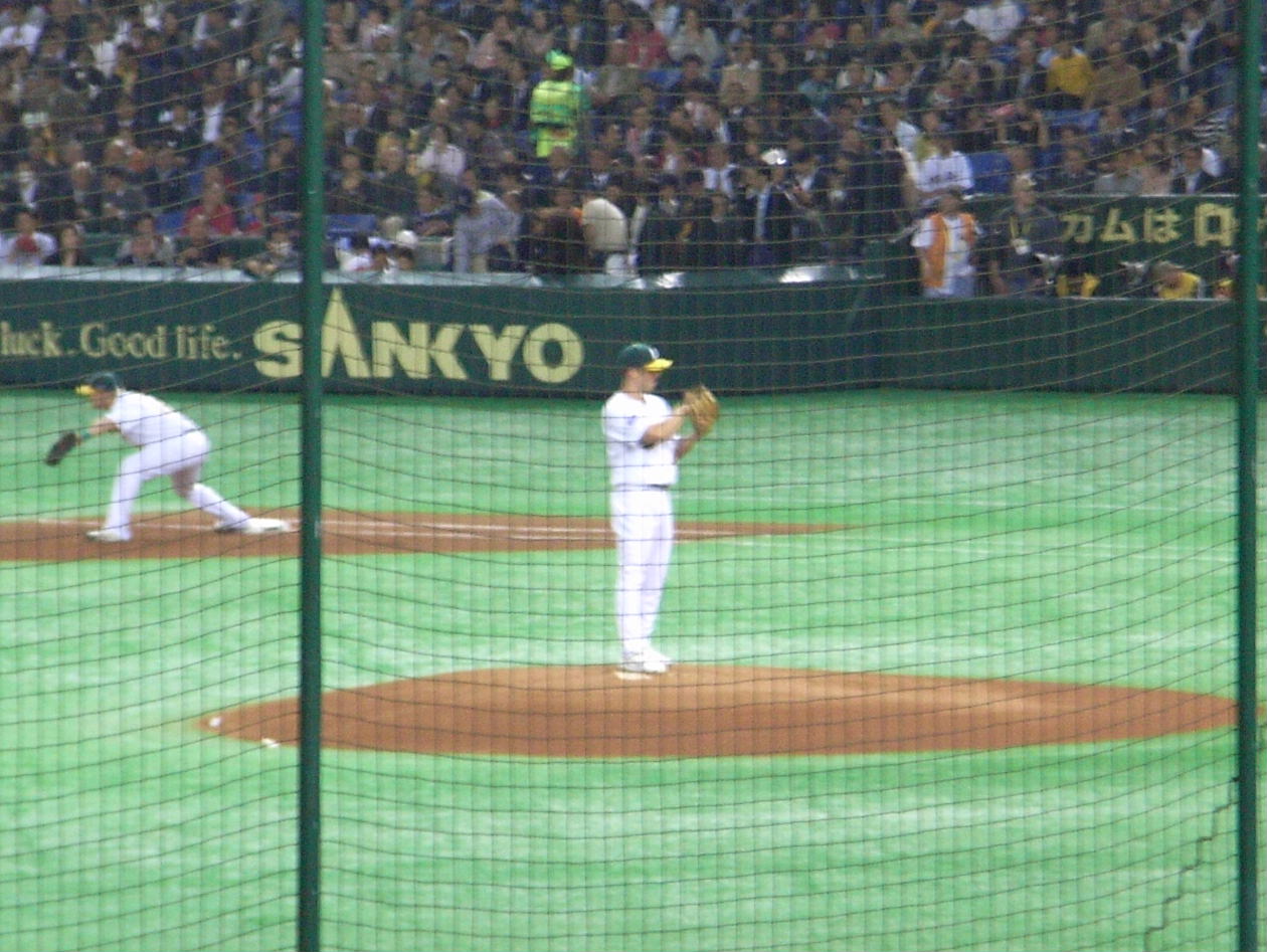 正直、松坂以外の先発を観たかった自分としては残念な試合。 その松坂も好投してくれればまだ良かったけどイマイチの内容。 とりあえず味方が逆転したから勝ち投手の権利を得て降板して リリーフしたシュナイダーが打たれて勝ち投手の権利が消えたので残念ムードはあったけど、 松坂がもっと球数を少なくして長いイニングを投げれればもっとましなリリーフ投手が出てきたんだから ある意味勝ちがつかなかったのは自業自得。 今日のスタメンで知らなかった選手はOAKのファーストのバートンとサードのハナハンに BOSのライトのモス。そのうちハナハンとモスは大活躍。チョット憶えておく。 でも今日の最大の収穫はチャンピオントロフィーが観れた事。 実物の小ささがかなりの驚き。結構ちゃっちいな。