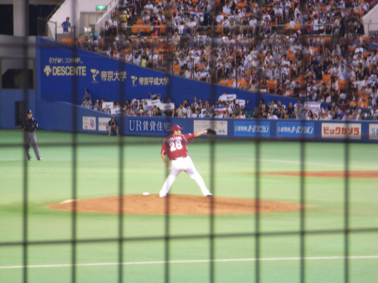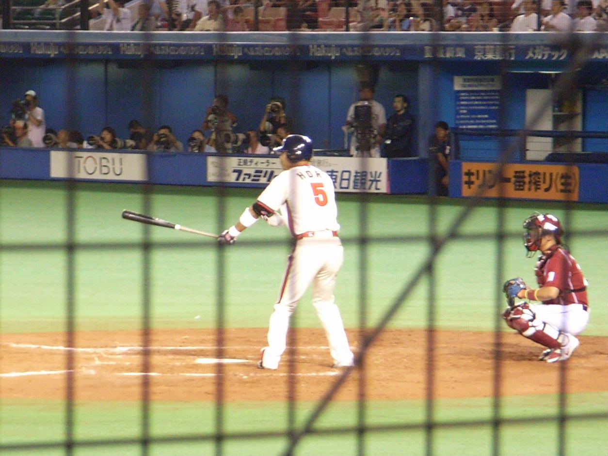 今日から仕事。でもまだ初日という事で4時前に終了。 せっかく早く終わったのでオリオンズのオールドユニフォームを観戦目的で千葉マリンへ。 約5年位ぶりの千葉マリン。あの頃は弱かったし日曜日でも結構空いていたけど 今じゃ月曜日でもなかなかの入り時代は代わったな。 先発は渡辺俊介と片山。このふたりじゃなきゃ無理して来なかったかも。 序盤は渡辺俊介と片山共にコントロールがイマイチ。ただ渡辺俊介はゲッツーをとって切り抜けたけど 片山はフェルナンデスの悪送球に井野のスクイズのボールのパスボールなど 味方の守備に足を引っ張られて2回に3失点。 結局この後ふたり共立ち直り投手戦になったから楽天にとって痛い失点だった。 オリオンズ・ユニフォームで観たかったのは川崎時代からプレーしている堀と小宮山。 残念ながら小宮山のオリオンズ・ユニフォームを観られなかったけど、 堀は2番ファーストでスタメン出場。なんか懐かしいけど、ストッキングは上げて欲しかった。 ちなみに今日のスタジアム飯はフィラデルフィアが本場のチーズステーキ。 本場ではないけれどNY旅行でヤンキースタジアムで食べたのと比べると味はだいぶ落ちる。 ただ、今現在チーズステーキを食べられる野球場は千葉マリンだけだし、 また観戦する機会があればたぶん食べるつもり。