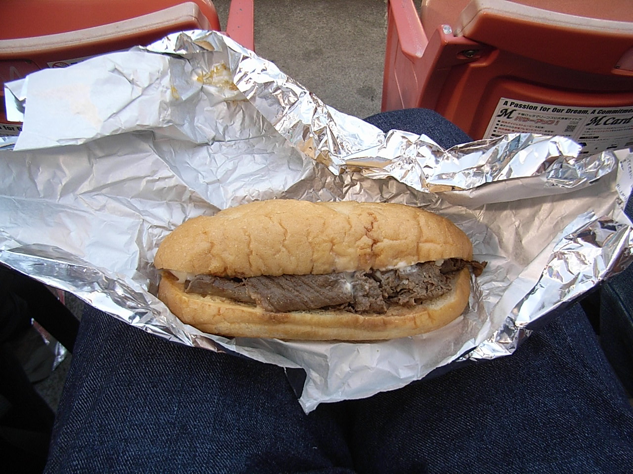 ちなみに今日のスタジアム飯はフィラデルフィアが本場のチーズステーキ。 本場ではないけれどNY旅行でヤンキースタジアムで食べたのと比べると味はだいぶ落ちる。 ただ、今現在チーズステーキを食べられる野球場は千葉マリンだけだし、 また観戦する機会があればたぶん食べるつもり。