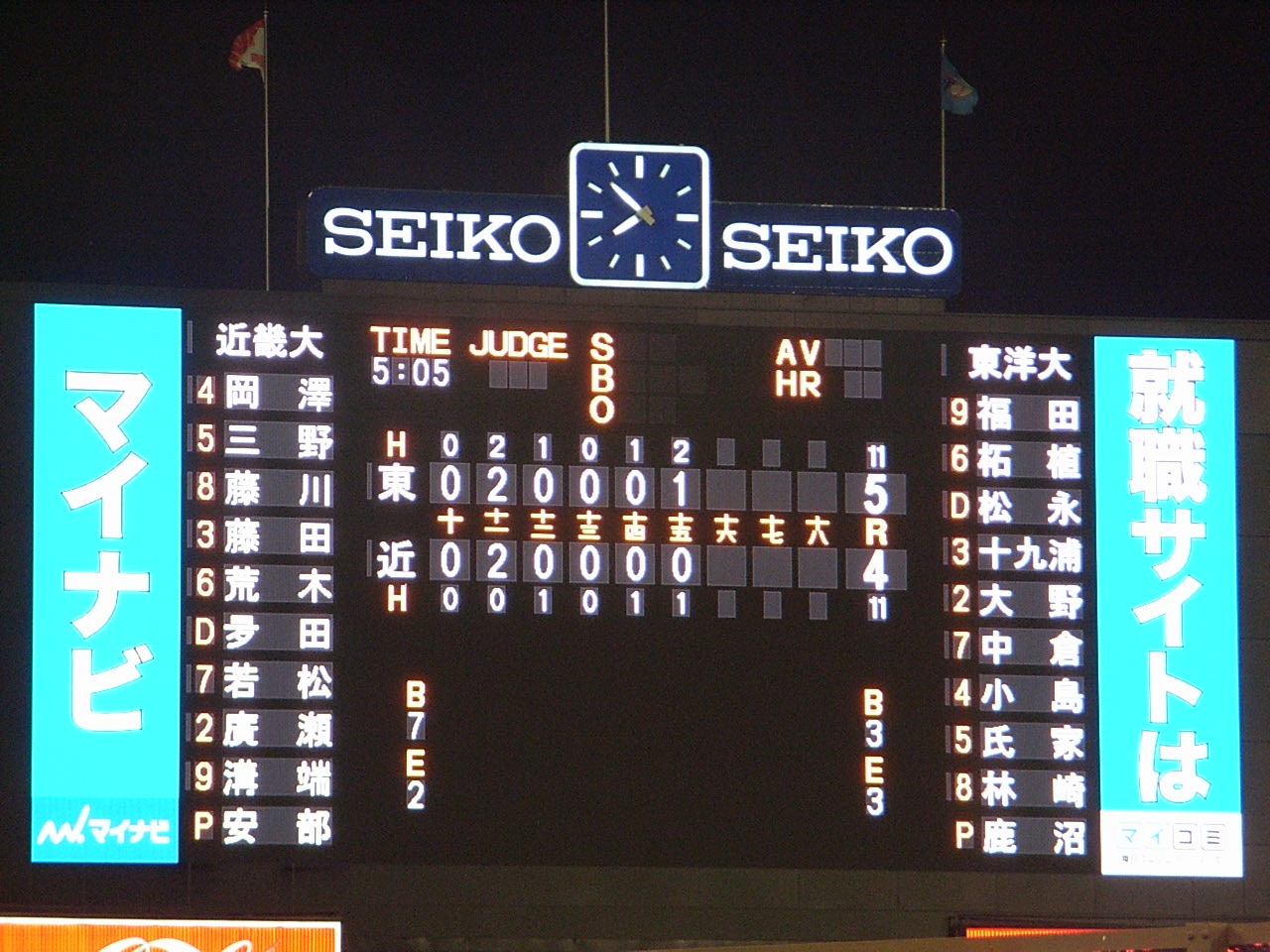 イニングの間とか三振を獲ったあとのオーロラビジョンの映像にCMが多目。